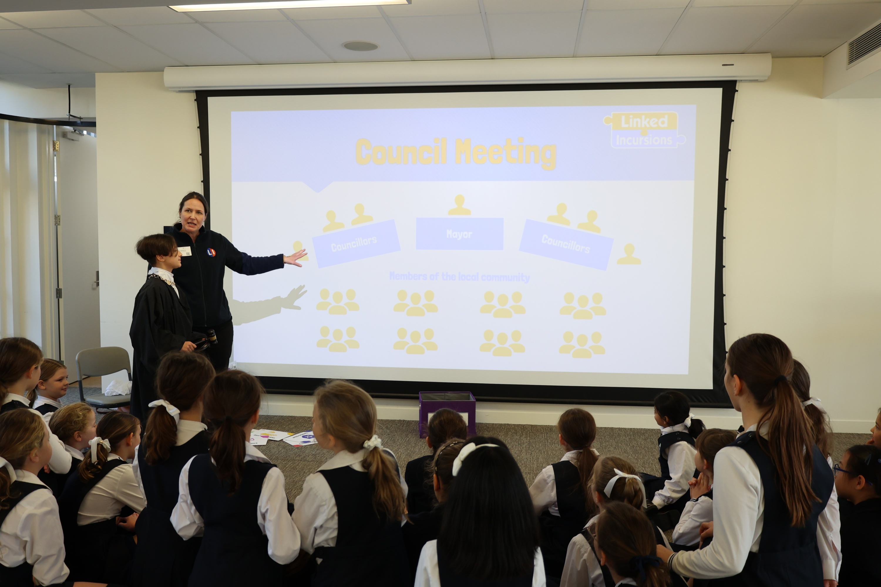Building on this incursion, students then explored key concepts such as the difference between rules and laws, the roles of the three levels of government (local, state and federal) and essential democratic terminology. These lessons helped develop civic literacy and laid the groundwork for our next experience: a visit from Rebecca Cohrssen, Founder and Director of Cohrssen Partners Lawyers. Rebecca explained how trials and courts operate and the role of prosecution and defence lawyers. Many of the girls finished this session inspired to study and practise law in the future – an industry, Cohrssen said, that “has a lot of smart and powerful women stepping into it.”